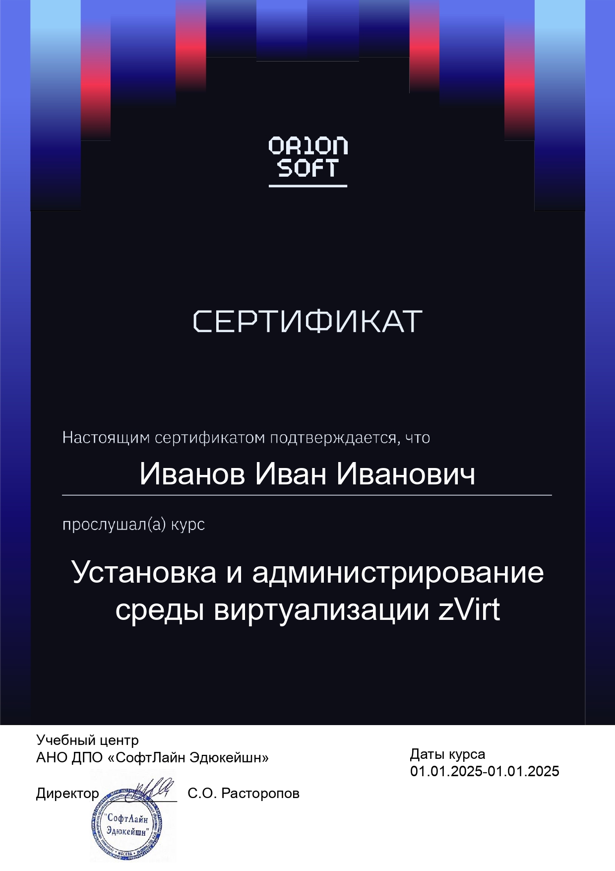 Курс ориентирован на специалистов, желающих получить базовые знания и получить практический опыт использования Российского решения виртуализации zVirt компании Orion soft (Орион). Образовательная программа проходит на базе версии zVirt 4.4.